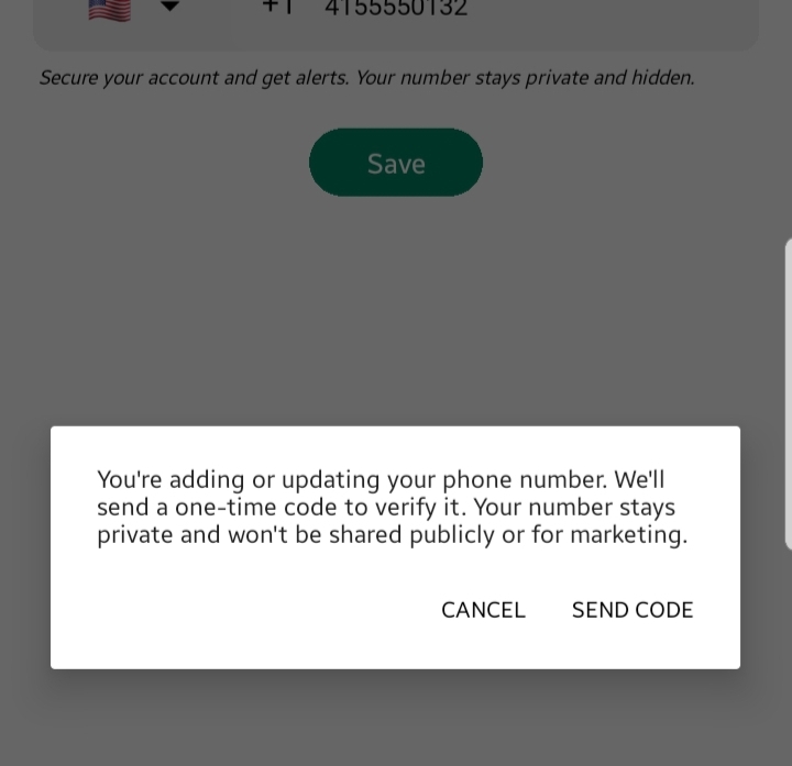 The prompt also clarifies that your number is not shared publicly.