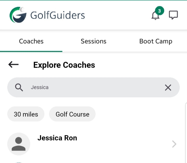 GolfGuiders automatically curates a list of professional coaches operating within a 30-mile radius of your current location. This ensures that you are presented with coaches available within a reasonable travel distance.
