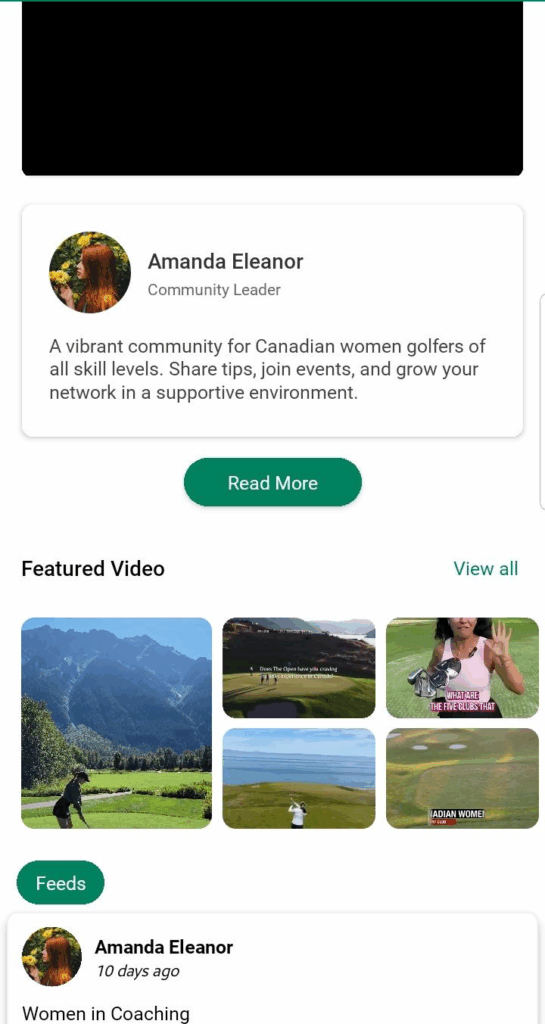 The Community Detail Page is a public-facing screen that allows Golfguiders users to explore communities, view their content, and optionally send a join request. Depending on the community’s visibility (public or private), users will have varying levels of access to the content and interaction features.