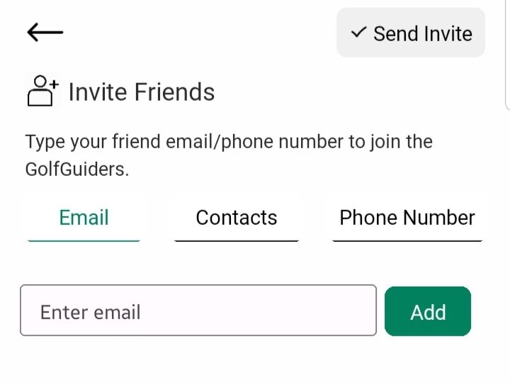The Invite Friends feature empowers users to grow their GolfGuiders network by inviting others to join the platform via email, phone number, or directly from their device’s contacts. Whether you’re a Coach looking to connect with potential clients or a Golfer wanting to bring friends into the experience, this tool offers a seamless and flexible invitation process.