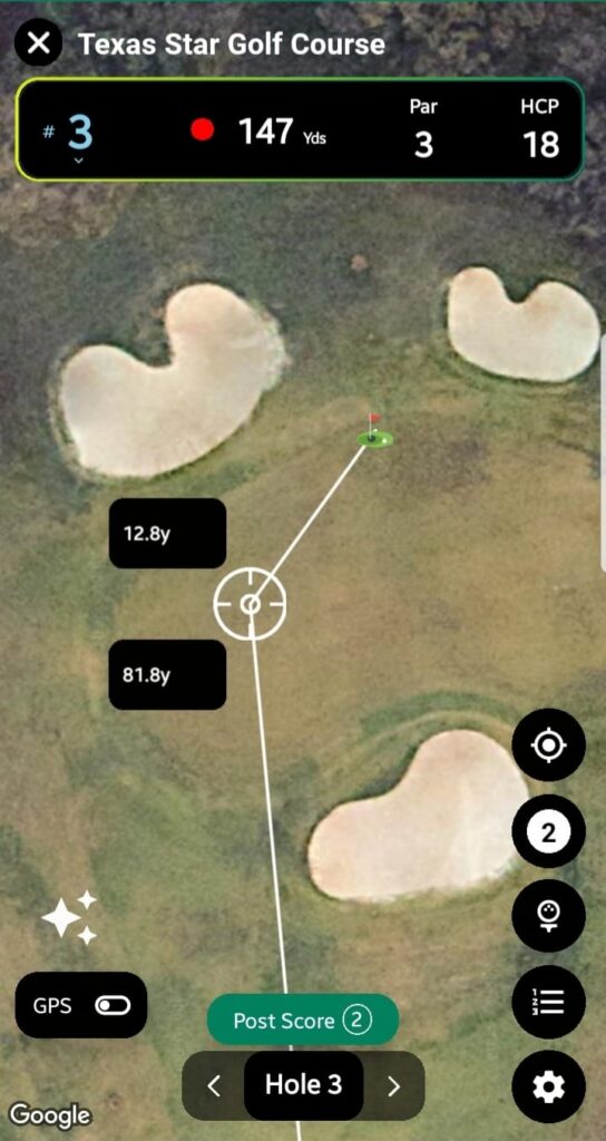 Tapping a hole updates the map focus to that hole.