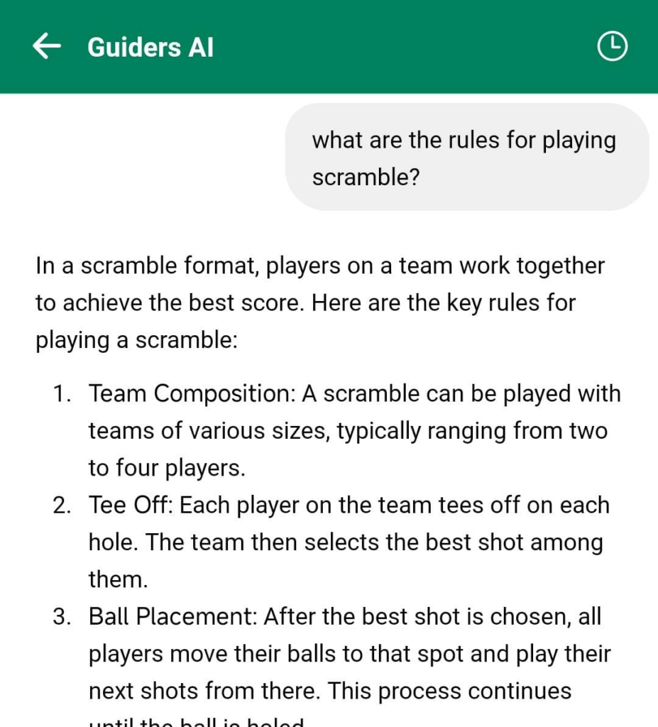 The Guiders AI is equipped to answer a wide variety of golf-related queries, providing information, tips, and advice suitable for all skill levels.