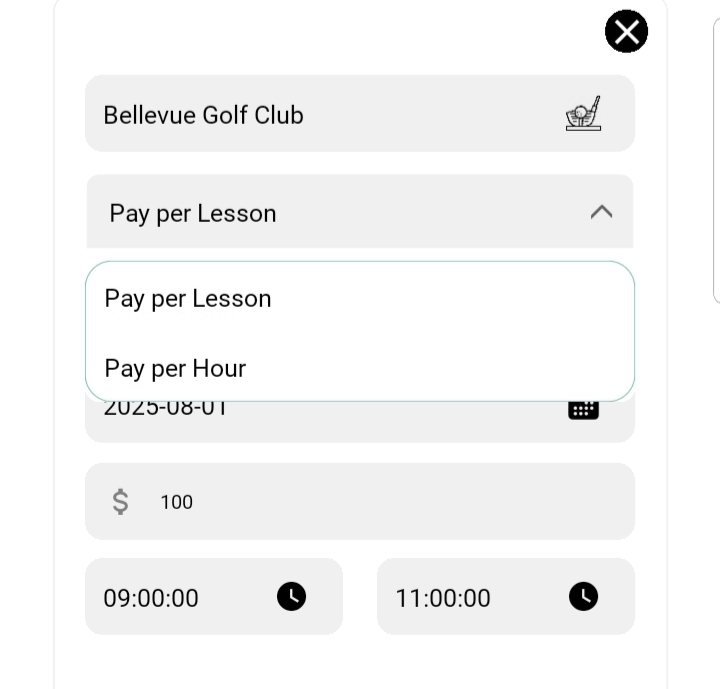 - Golfers see only the dates, golf courses, training types, and rates that match your defined availability.