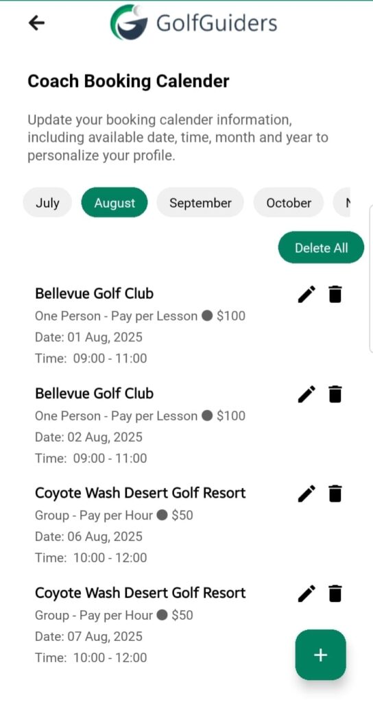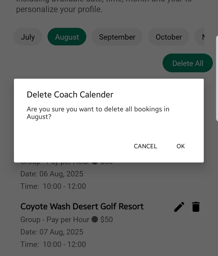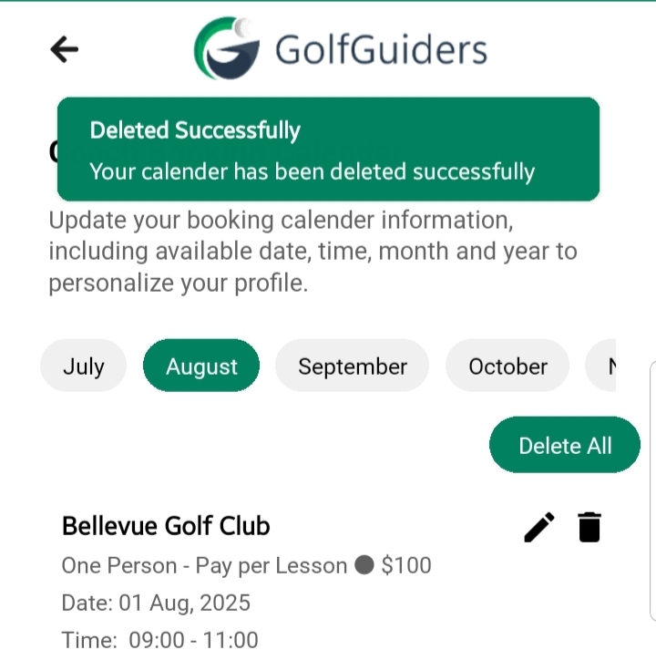 - Delete All: You can also tap “Delete All” from any month’s tab if you want to remove all availabilities at once from a month.