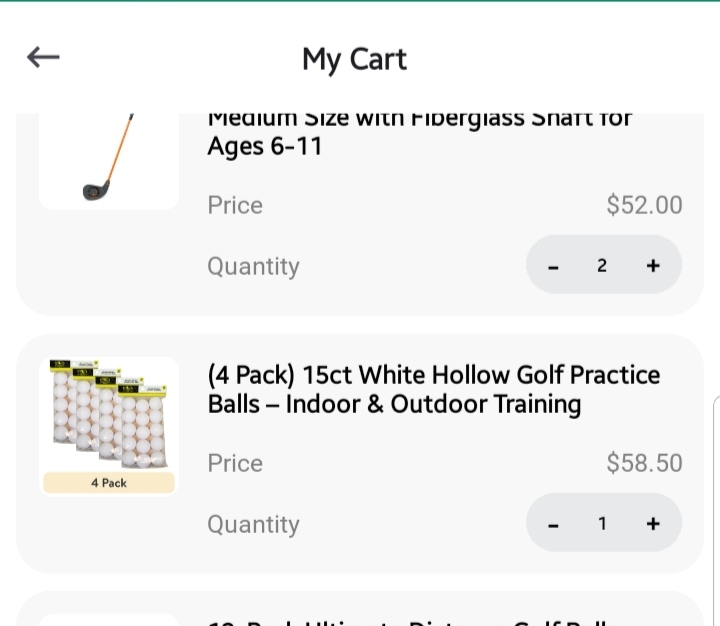 The Cart screen provides a clear and interactive view of all the products you’ve selected for purchase, allowing easy adjustments before checking out.