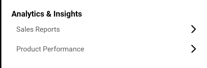 Presents real-time performance data for your store, such as sales trends and product performance metrics. This section is essential for strategic planning and growth tracking.