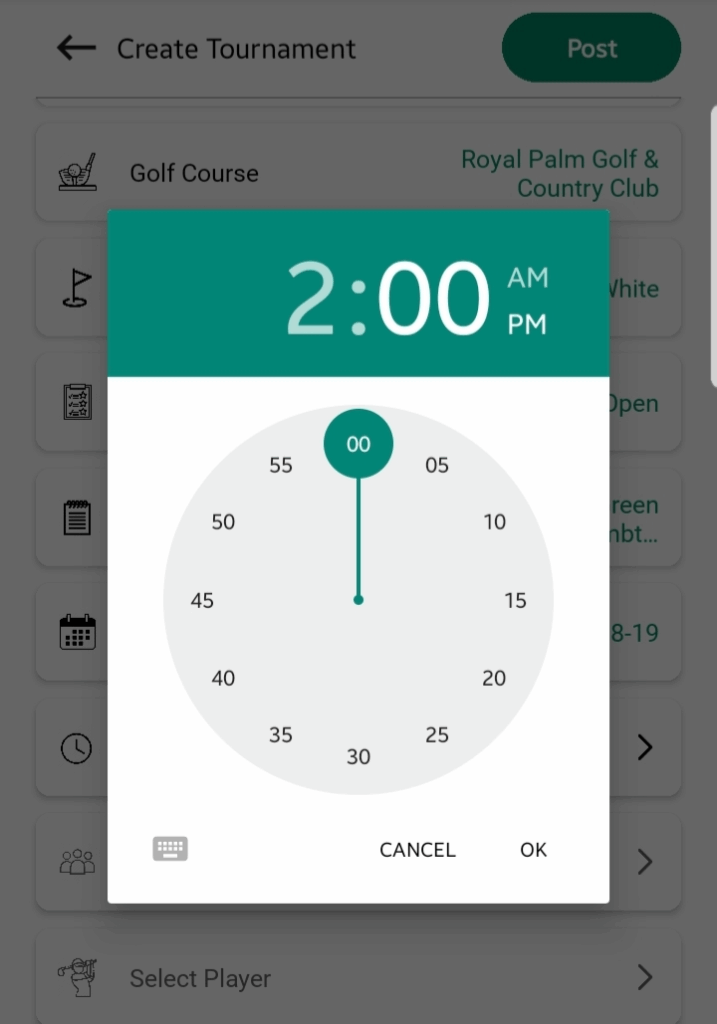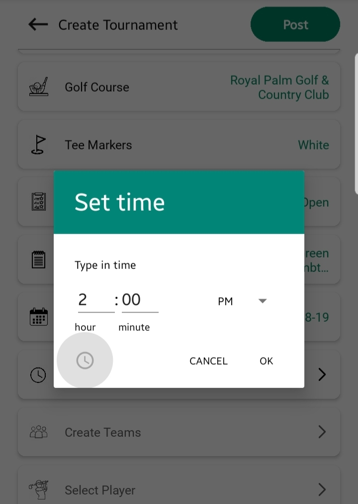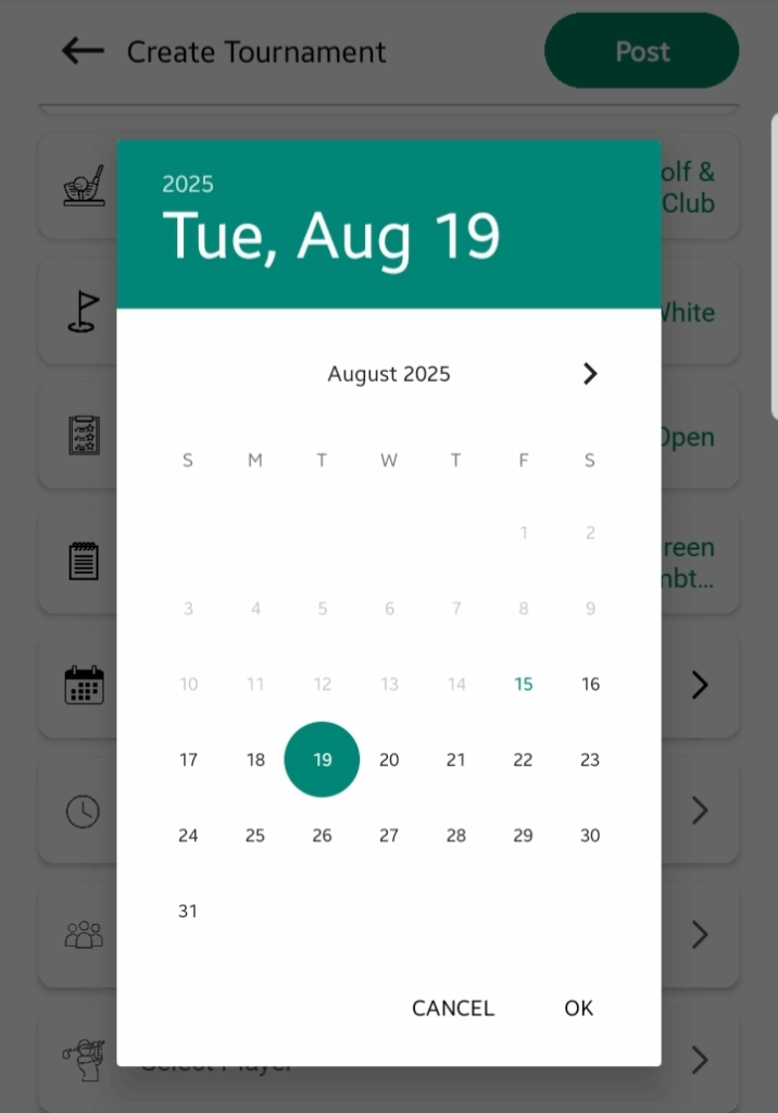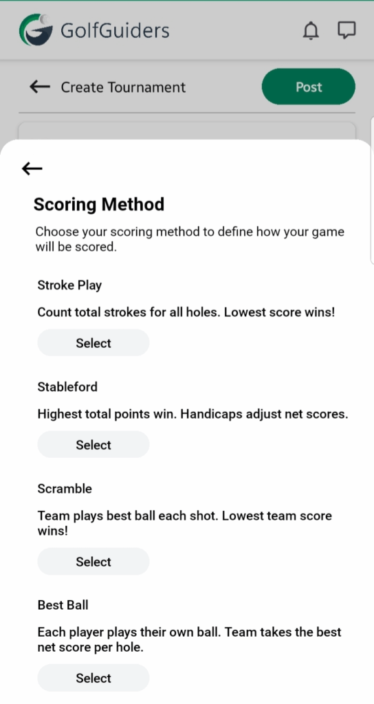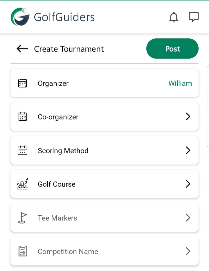 • Post (top-right): Creates the tournament, sends invitations, and finalizes the setup.