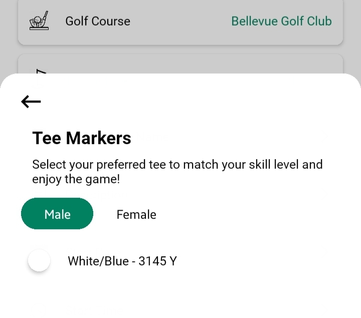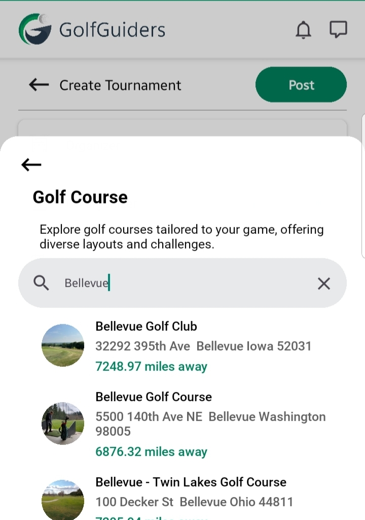 Select a golf course for your tournament from nearby options or search for one as per your convenience.