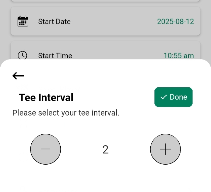 Tee intervals is the gap between group tee-offs. You can adjust tee intervals in your tournament (minimum intervals is 2 minutes).