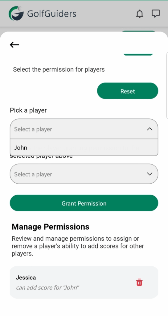 Tap “Grant Permission” to give access to player for adding score i.e Jessica will add score for John