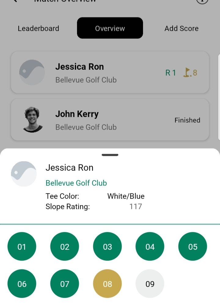 Or users can tap on any player card to view full details i.e their slope rating or their current hole