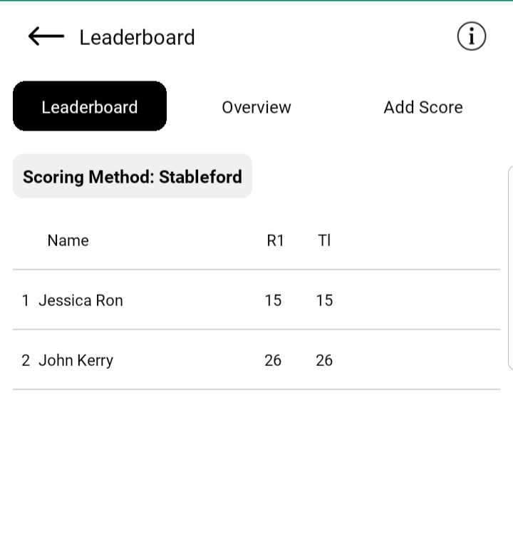 - Selecting a round updates the leaderboard to show scores specific to that round.