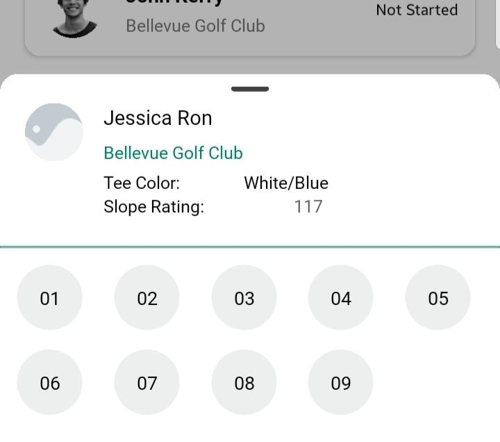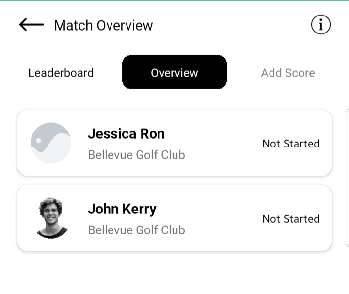 Each player includes: Player name, Golf course name, Status: Not Started (for all players).