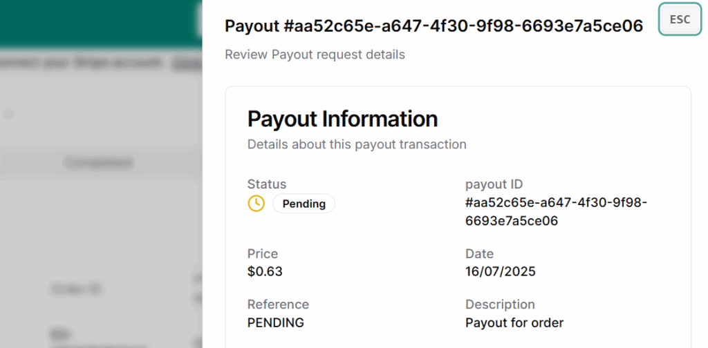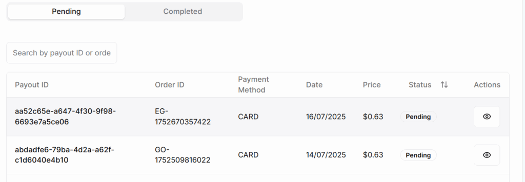 • Status → Indicates if the payout is Pending or Completed.