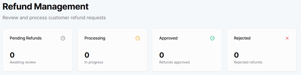 • Keep refund statuses (Pending, Processing, Approved, Rejected) up-to-date to avoid confusion.
