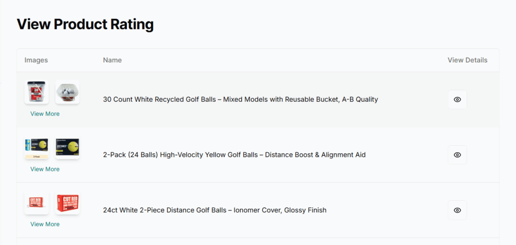 - An eye icon opens the ratings/reviews section for that product.
