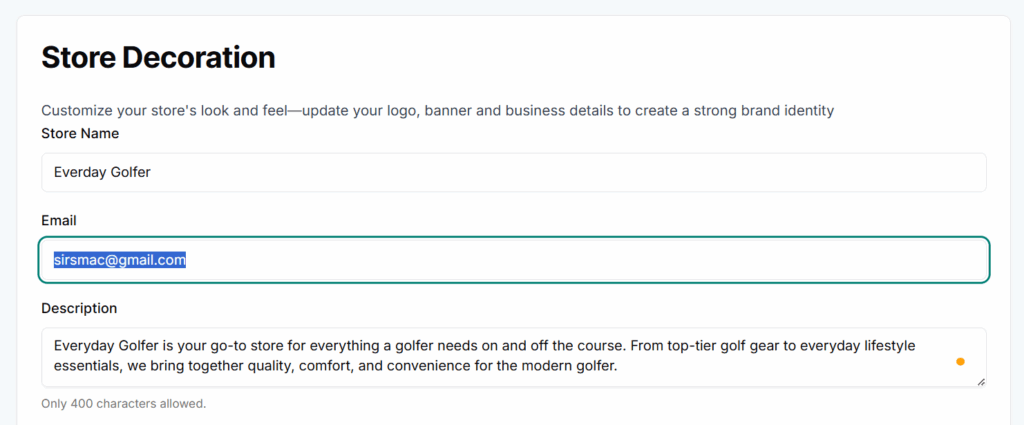 💡 Keep it concise but meaningful. Focus on what sets your store apart.
