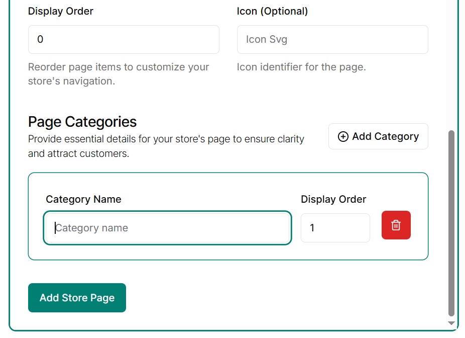 This interface offers an intuitive way to add, organize, and categorize new pages to enhance store navigation and user experience.